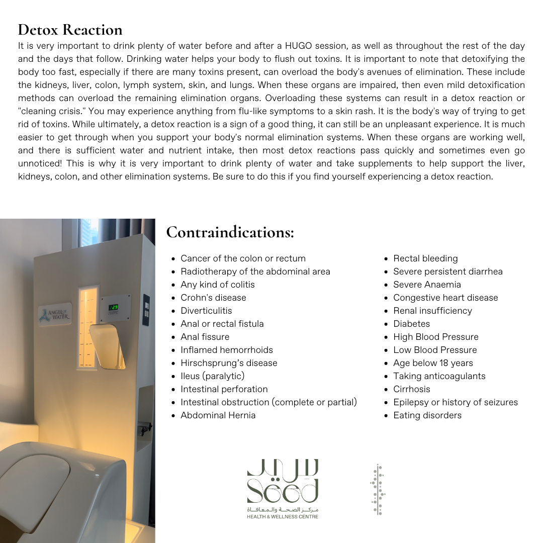 We offer you a complimentary electrolyte drink and probiotic after the treatment to restore the minerals that may be lost during the cleansing, as well as re-inoculating good bacteria to your gut.
